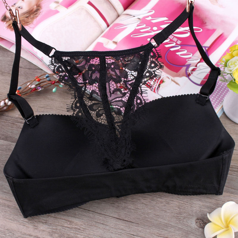 Sexy front buckle rimless bra gathered without trace One-piece bra hollow lace beauty back Women's underwear set