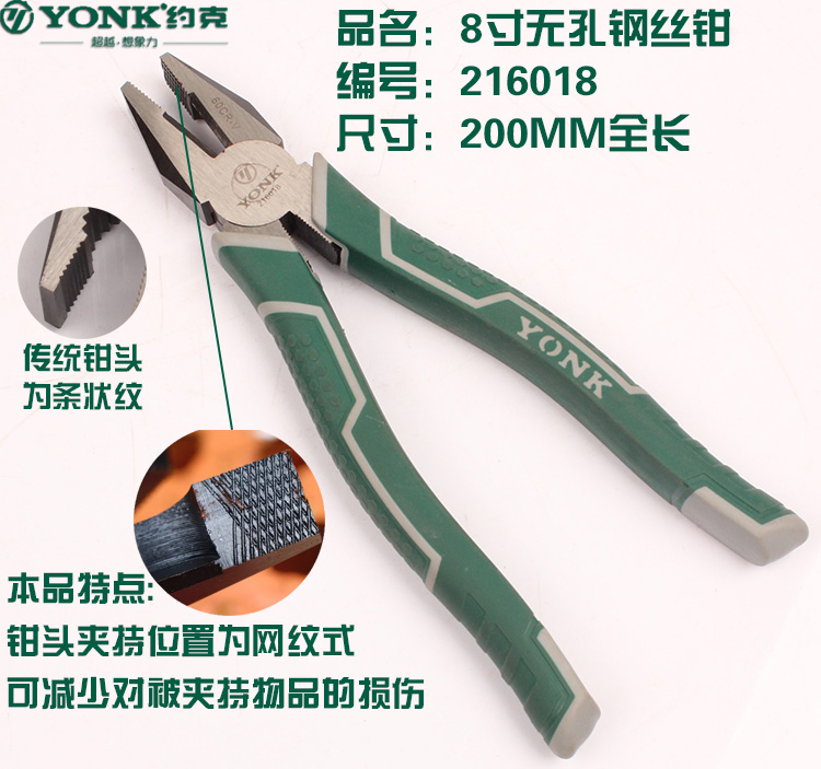 YONK pure industrial grade steel wire pliers 8-inch old Rover pliers sharp-mouth pliers Electrotechnical pliers multifunctional hand pliers