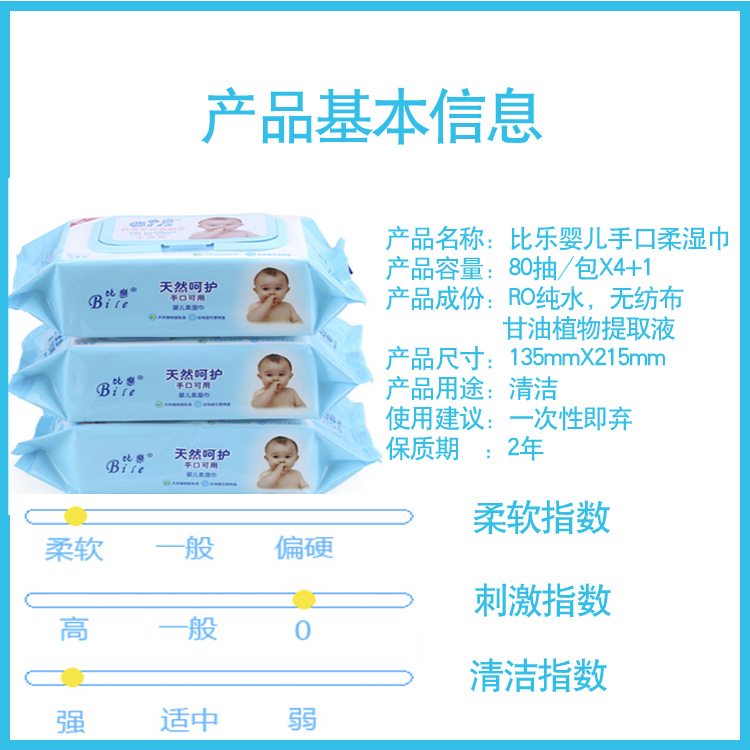 Pabile baby disposable soft wipes 80 pumps 4 packs of newborn children's fragrance-free wet wipes with lid for babies