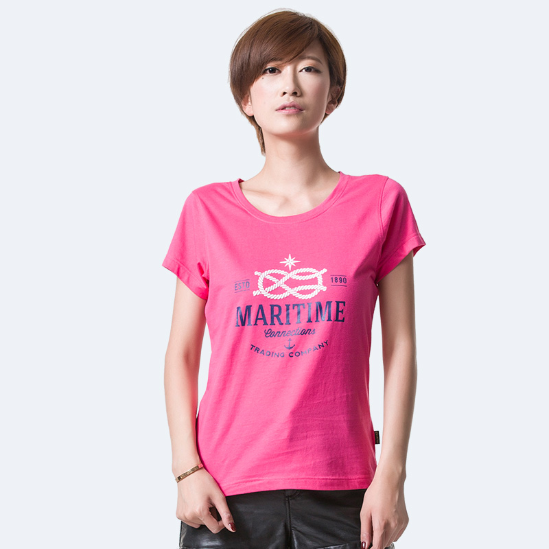 (Ocean Series) Art Summer Ship Anchor Cable Printed Short Sleeve Lady Round Collar Letter Sports Casual T-Shirt