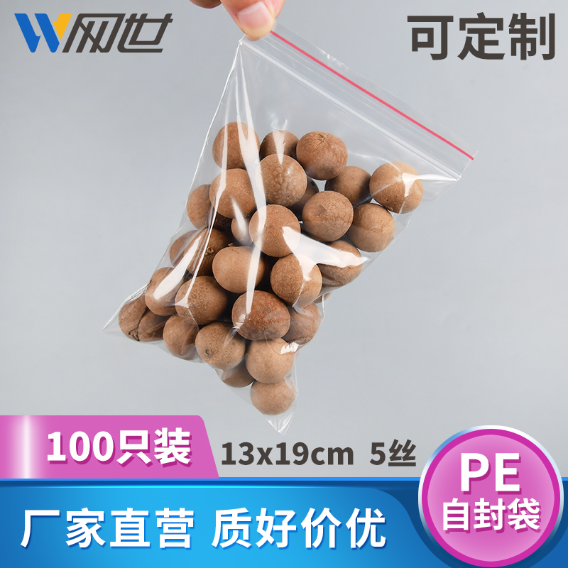 6 No. 5 13*19cm self-sealing bag 5 wire PE dustproof instruction manual classification bag food clip chain sealed packaging 100