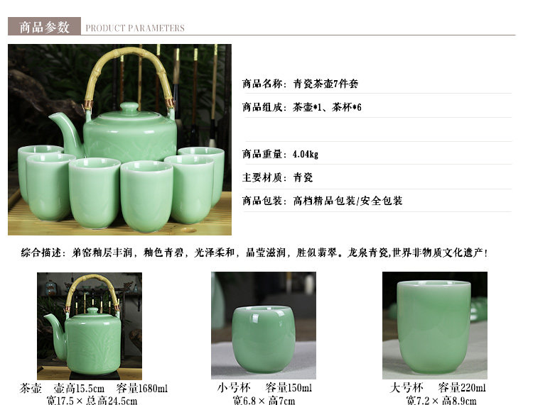 Suit (teapot 1680ML small number cup 150ML) suit (teapot 1680ML big number cup 220ML) teapot (1) plum green small tea cup (1 only) big tea