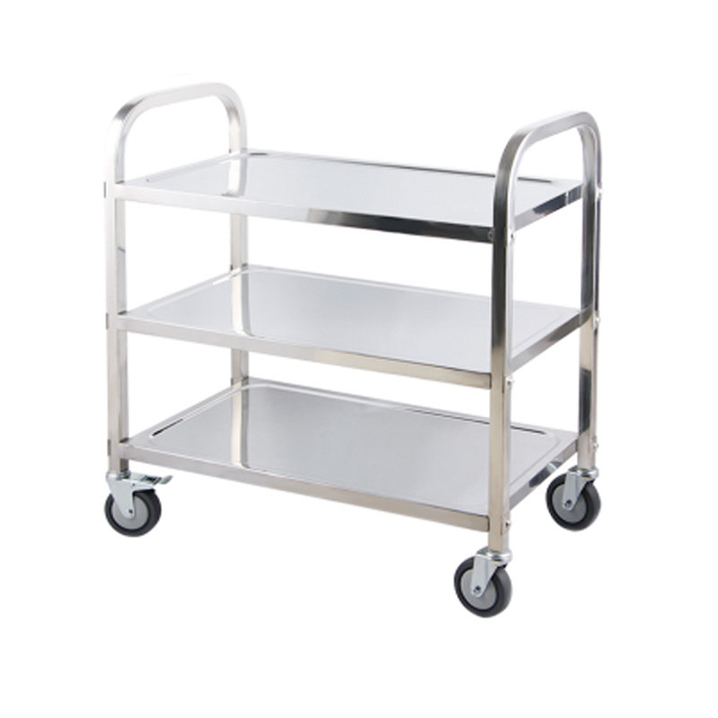 The hotel's second and third-floor restaurant small trolley large stainless steel bowl collection car delivery food truck plate restaurant mobile on the shelves