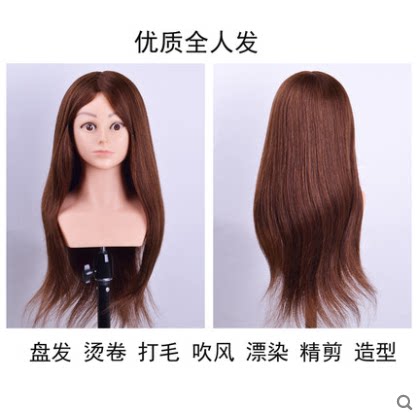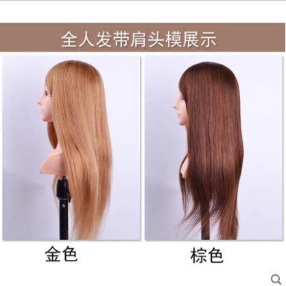 With Shoulder head mold Real Hair Fake Human Head Practice Head Disc Hair Doll Wig Model Head Model Scale-up-Taobao