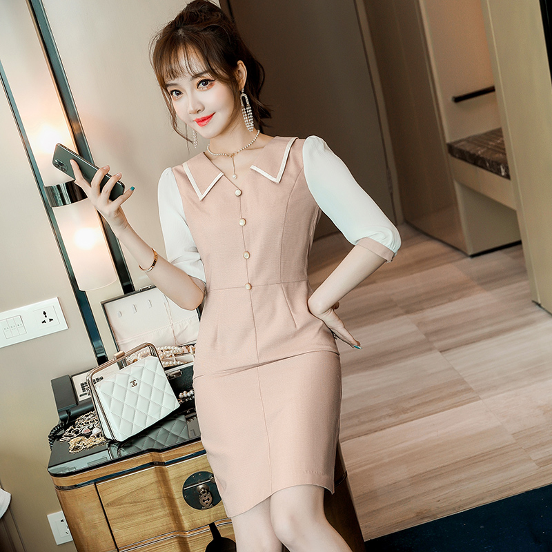New beautician work clothes dress short-sleeved summer dress Professional dress Beauty salon cosmetics shopping guide tooling