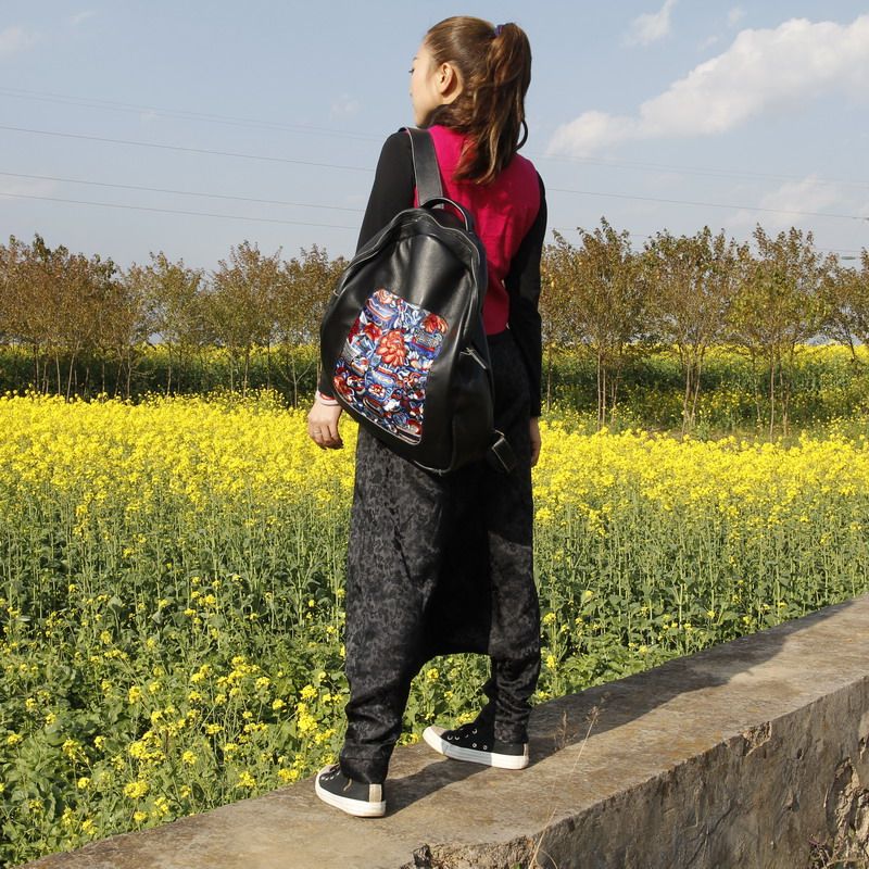 Yunzao Totem Original Design Women's Bag Ethnic Fan Embroidered Peony Leather Travel Backpack