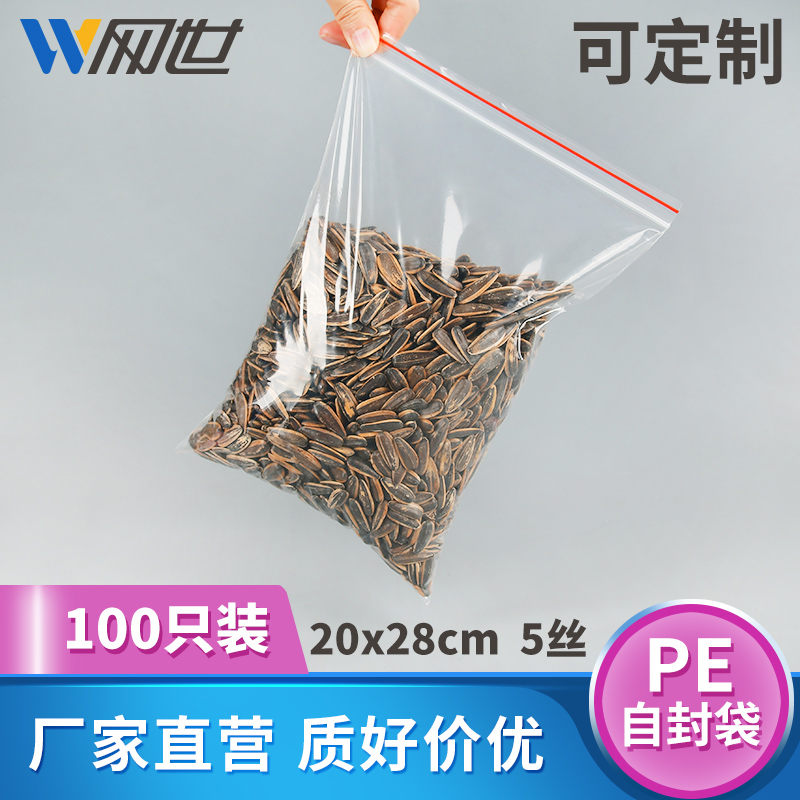 No. 9 20*28cm self-sealing bag 5 silk PE transparent medicinal material moisture-proof sealing bag storage bayonet plastic packaging 100