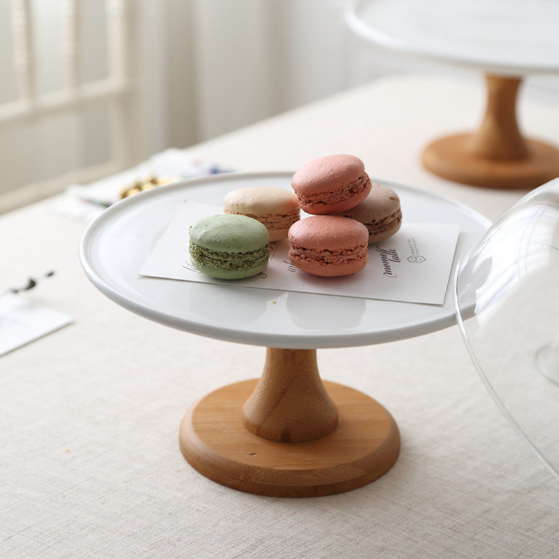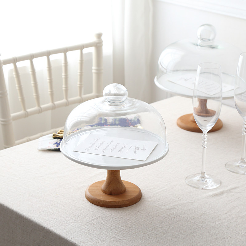 Cake Snack Dish Rack High Foot Ceramic Fruit Nursery Matching Unleaded Glass Cover Afternoon Tea Wedding Dessert Terrace