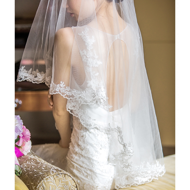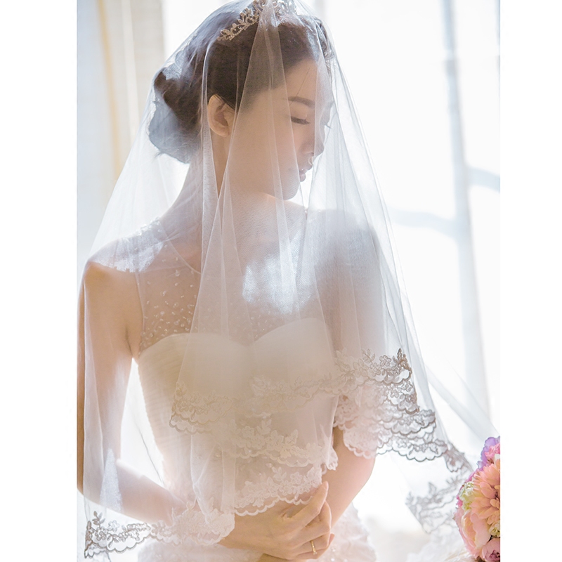 Bridal wedding veil 2020 new Korean lace super long tail 3 meters soft yarn wedding veil simple