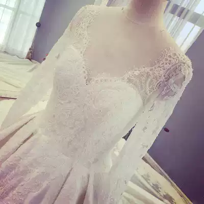 Wedding dress 2021 new bride Korean style long trailing shoulder V collar simple lace thin satin