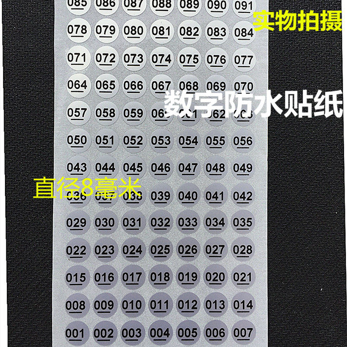 Round Diameter 8 mm Chia Oil Glue Adapted Number number Number Number of labels 001 to 300 waterproof classification stickers