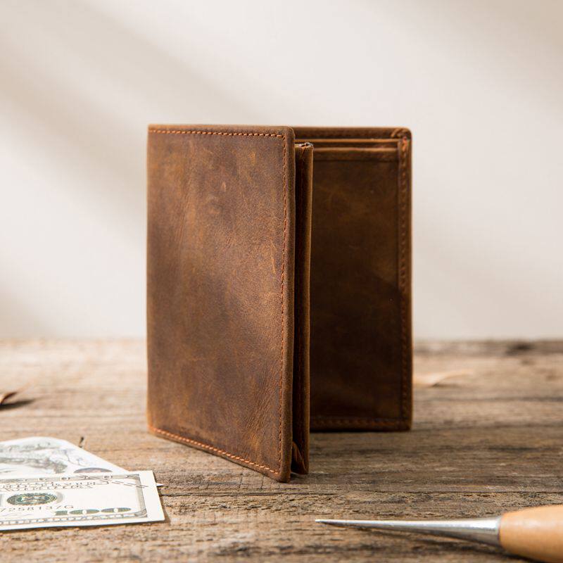 Hand crazy horse heads cow skin retro style erected men's wallet Simply make old leather lady wallet