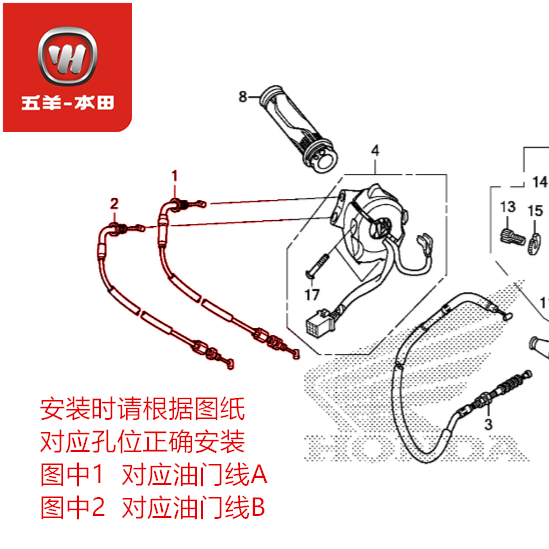 Wuyang Honda CB190R Storm Eye WH175 WH175-2A Original throttle line return refueling cable cable