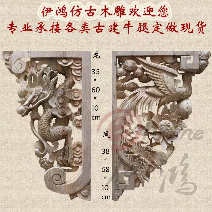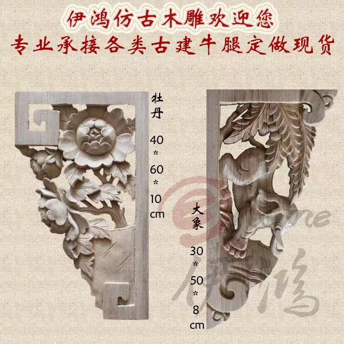Dongyang wood carving solid wood finch carved ox leg pillar head beam dragging horn flower Chinese antique engineering building temple decoration