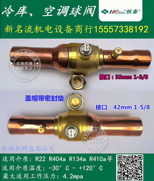 REFRIGERATION BALL VALVE COLD STORAGE STOP VALVE AIR CONDITIONING BALL VALVE WELDING MOUTH VALVE 35mm 42mm HENGSEN BALL VALVE PURE COPPER VALVE