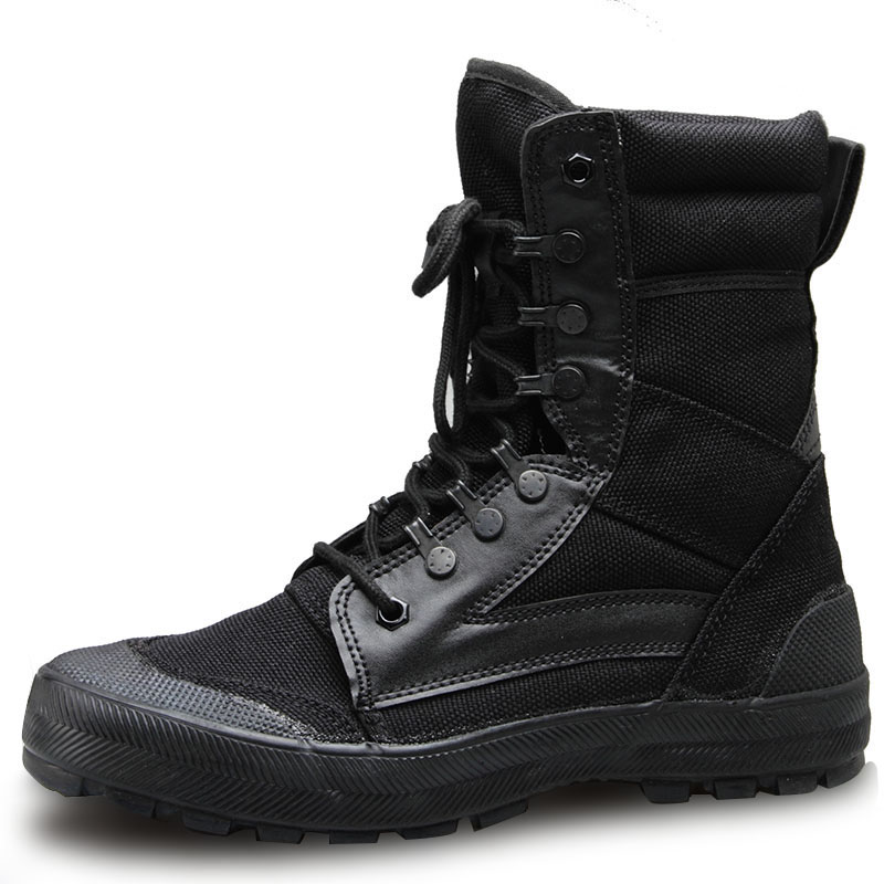 International Hua 3537 Security Shoes Men's Black Ultralight Combat Training Boots Canvas Combat Shoes High Cylinder Combat Training Shoes Combat Boots Man