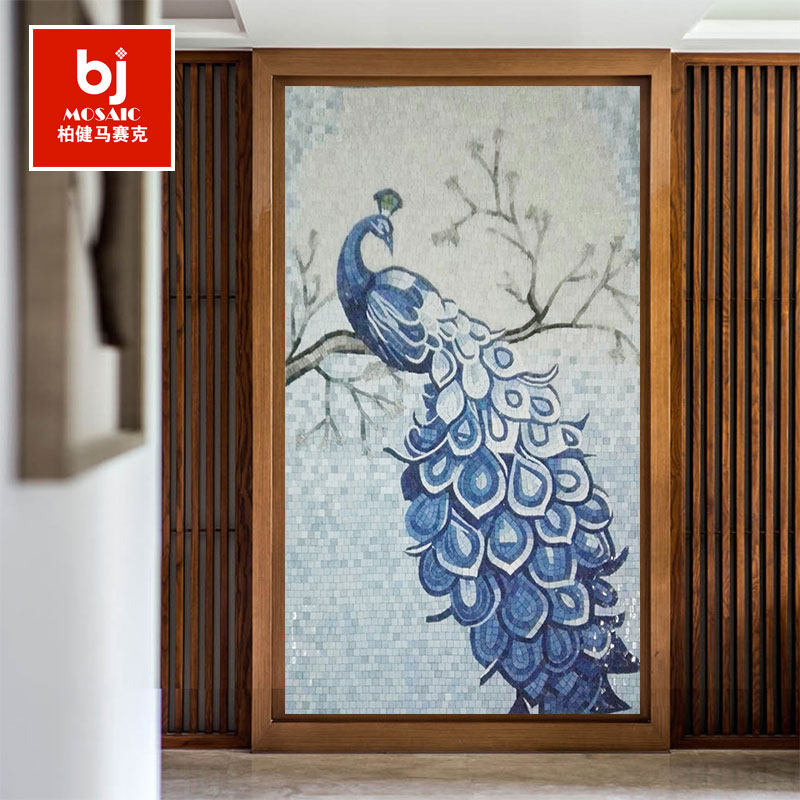 Peacock Ice Jade Mosaic Background Wall Cut Painting European-style Genguan Dining Room Villa Jigsaw Puzzle Parquet Decoration Building Materials Custom