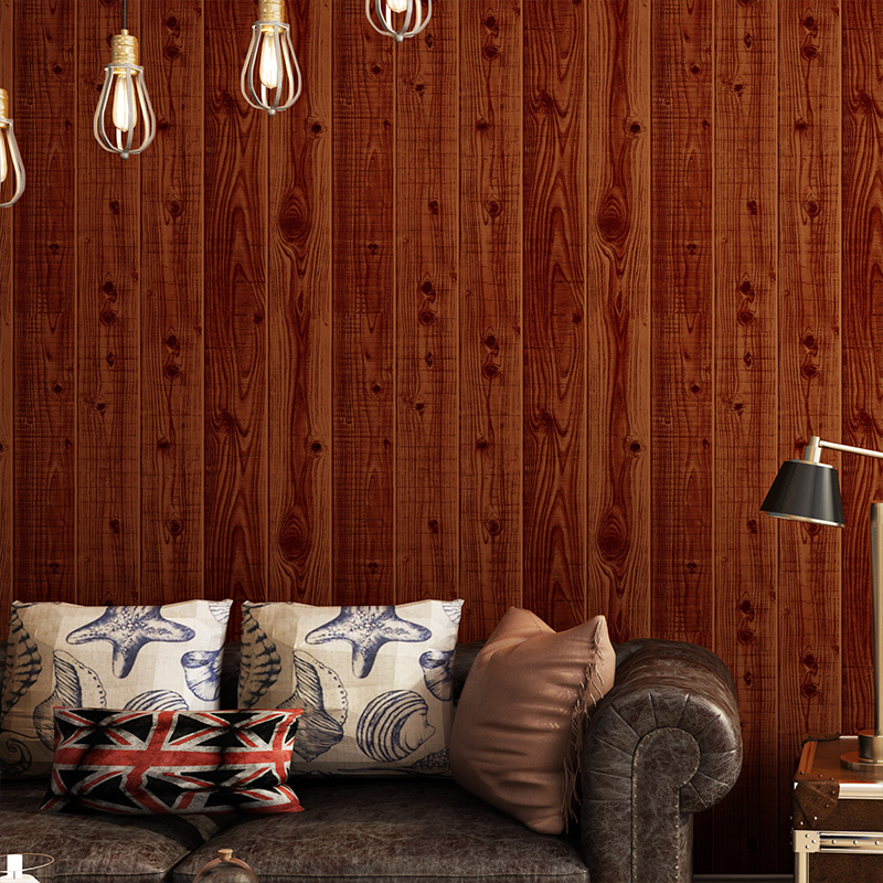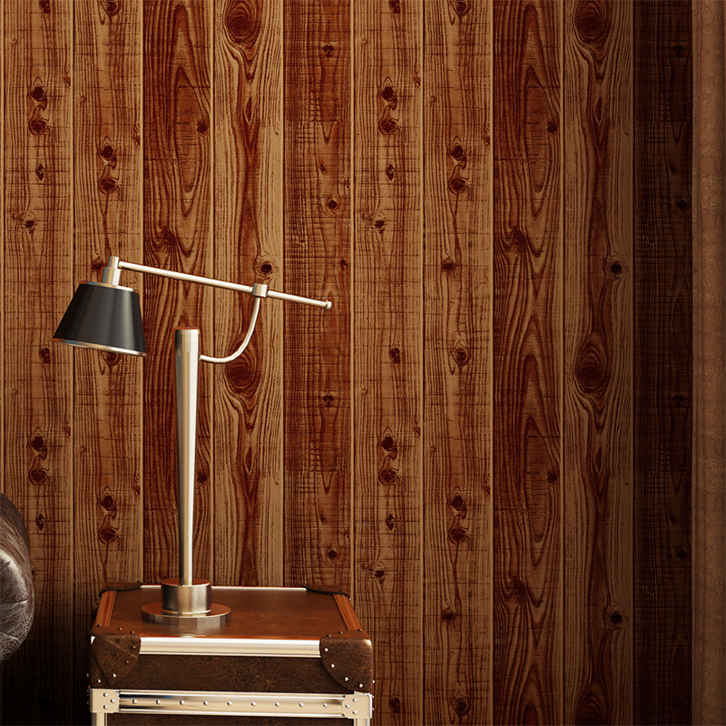Waterproof Chinese wood grain wallpaper Tea House Restaurant Just the hotel Furnishing Dark Brown Beech Wood Color Engineering Wallpaper Furnishing Roll