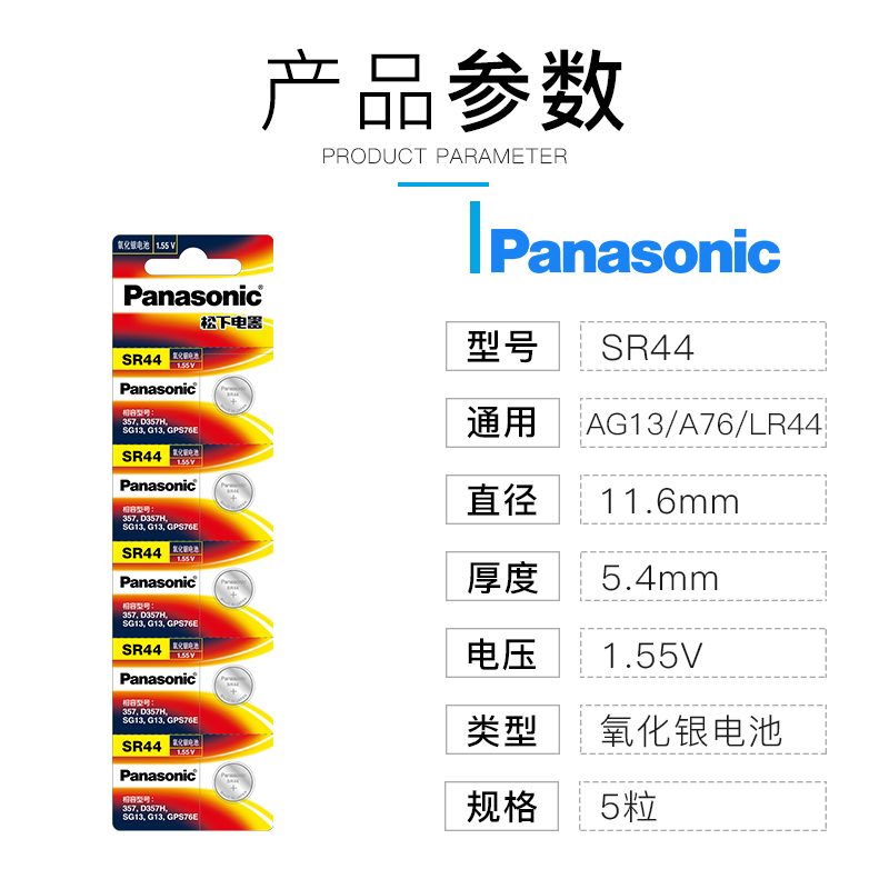 Panasonic SR44 button battery A76 AG13 L1154 357a LR44 silver oxide 1 55V button watch electronic toy remote control vernier caliper buckle small
