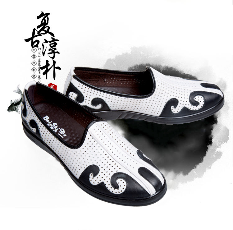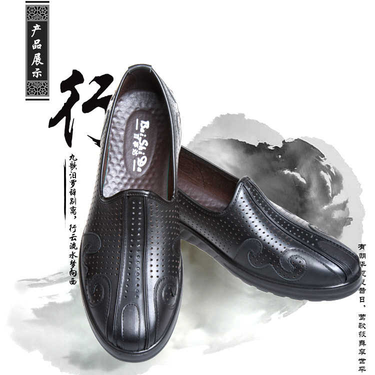 Leather shoes men's leather Chinese style breathable cloud head shoes sprinkle shoes old Beijing cloth shoes men's Chinese casual kung fu shoes Zen shoes