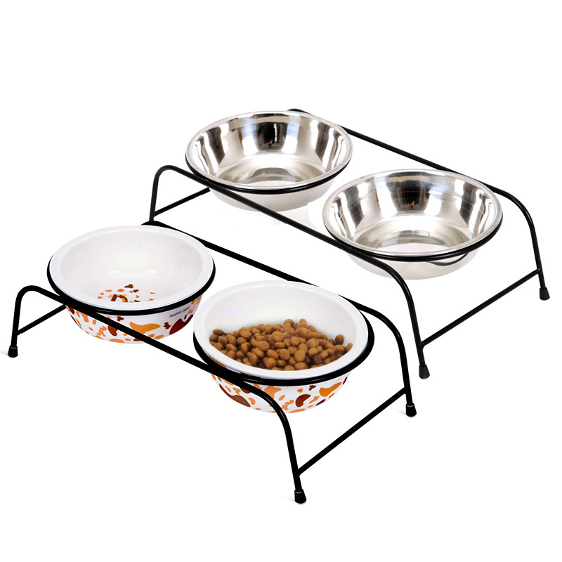 Cat Bowl double bowl Dog Bowl Cat Basin dog Cat Water Bowl Ceramic Pet Stainless Steel Anti-Turn Bowl Rack Cat Food Basin
