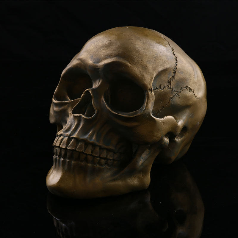 Human Skull Model Halloween Scene Dressing Props Resin Skull Model High Imitation 1:1 Bronze