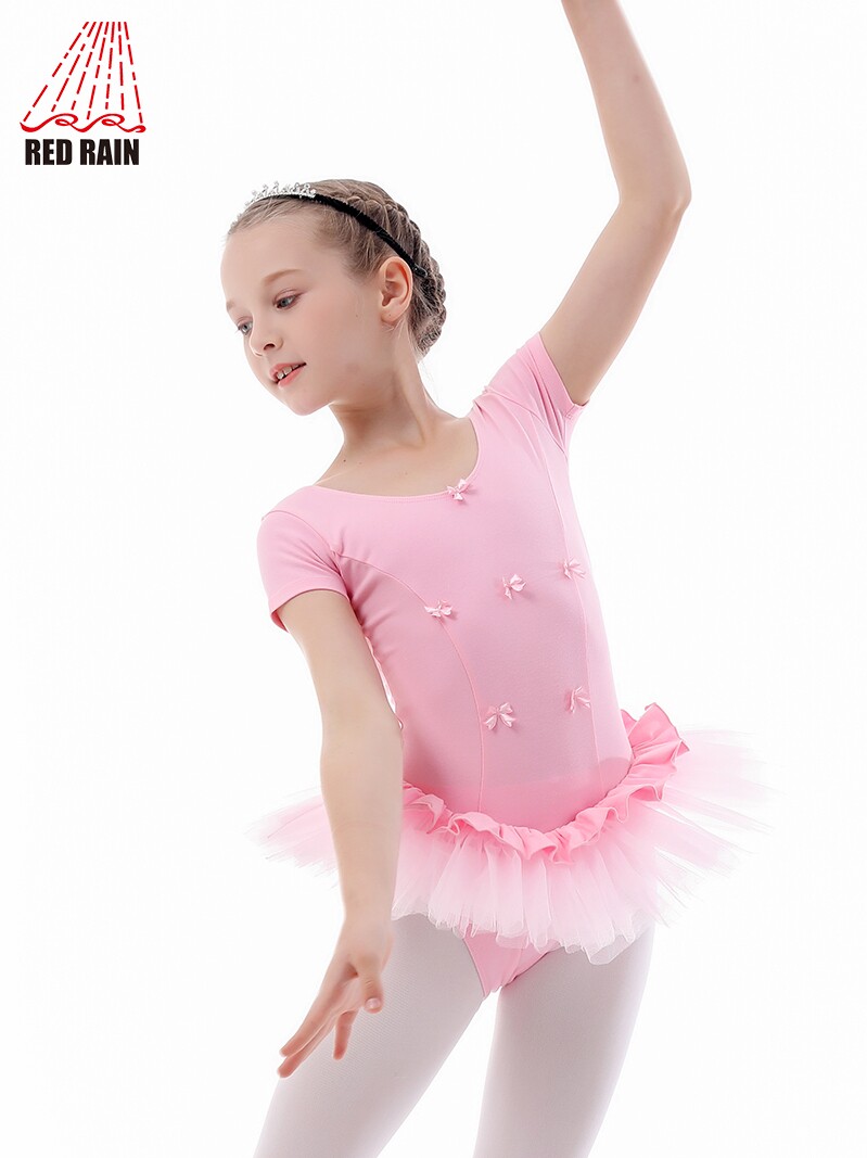 Red Rain Dance Skirt Children's Ballet Jumpsuit Girls Short Skirt Short-sleeved Body Exercise Suit Gauze Skirt Dance Skirt