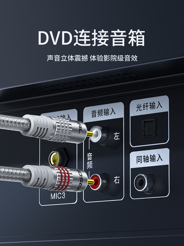 Akihabara double lotus head audio cable two to two 2RCA lotus plug line red and white lotus line audio cable