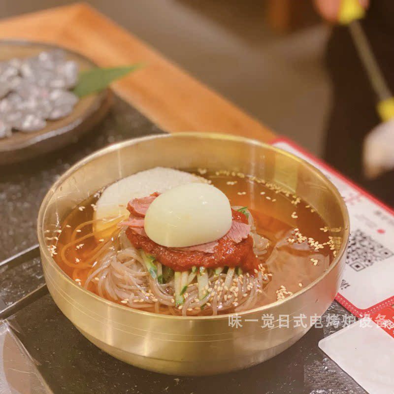 Stainless steel cold noodle bowl with soup bowl Korean noodle bowl with salad bowl La Han meat tableware