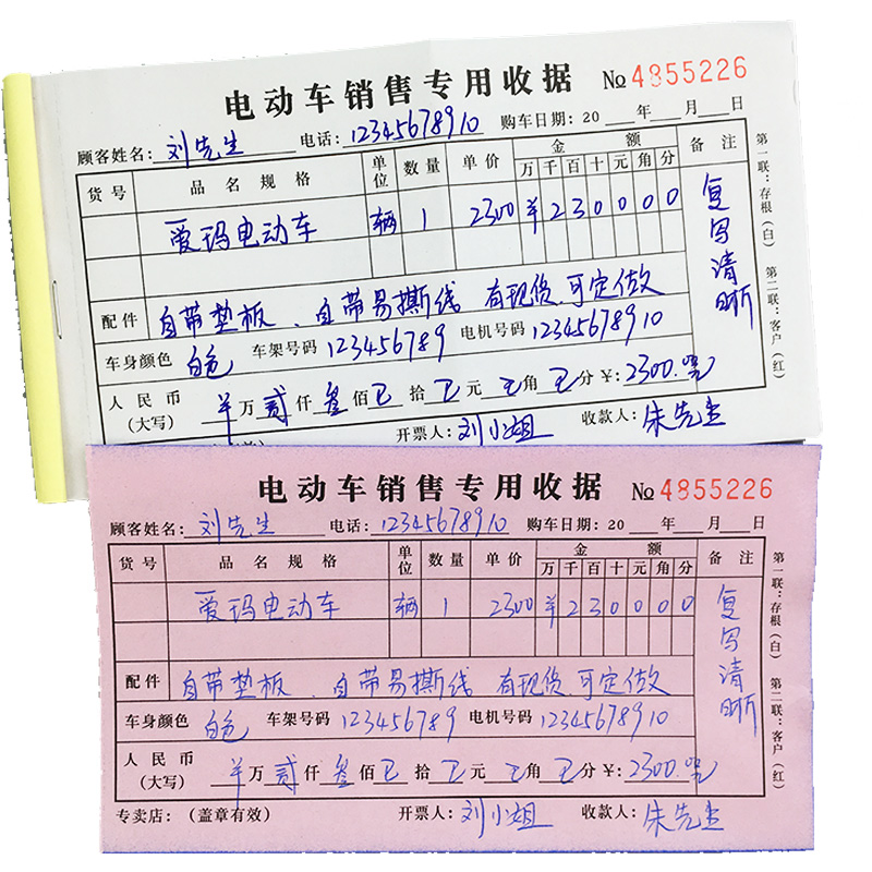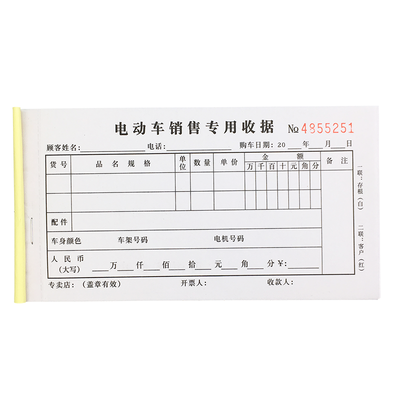 Easy to comeback 48K electric car sales special receipt Erlianz rewritten car line sales bill collection documents to be made