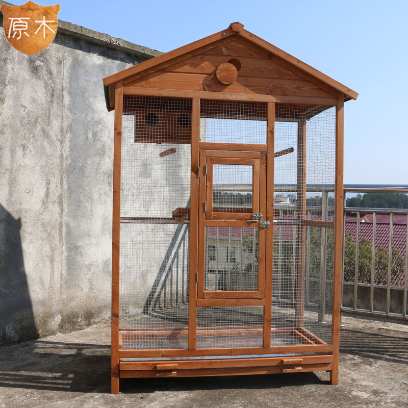 Wooden bird cage Parrot cage Peony tiger skin starling cage Large bird cage Pearl bird large solid wood breeding cage