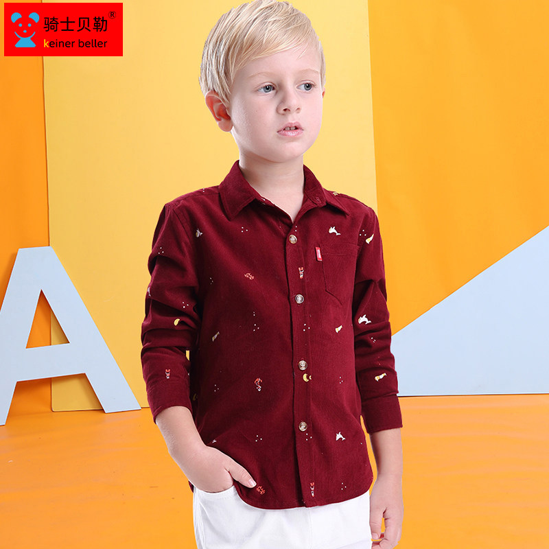 Boys' shirts, long-sleeved children's printed shirts, 2022 new spring clothes, big children's cotton children's tops, Korean version tide