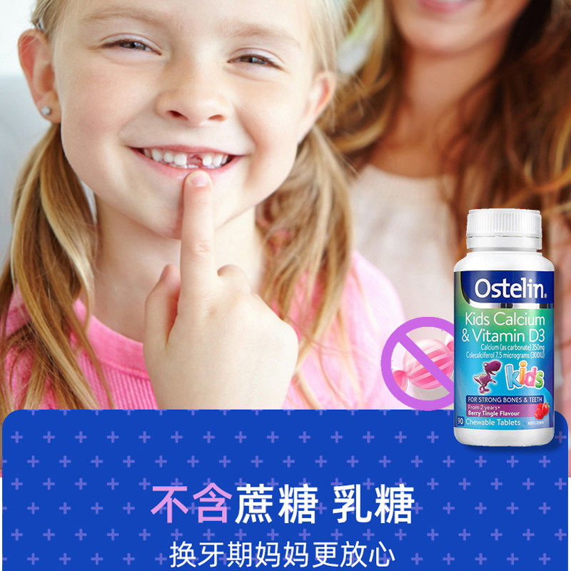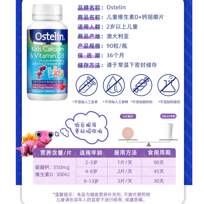 New packaging Australian OSTELIN 2 years old children over 2 years old calcium VD chewing tablets nutritional small dinosaur calcium 90