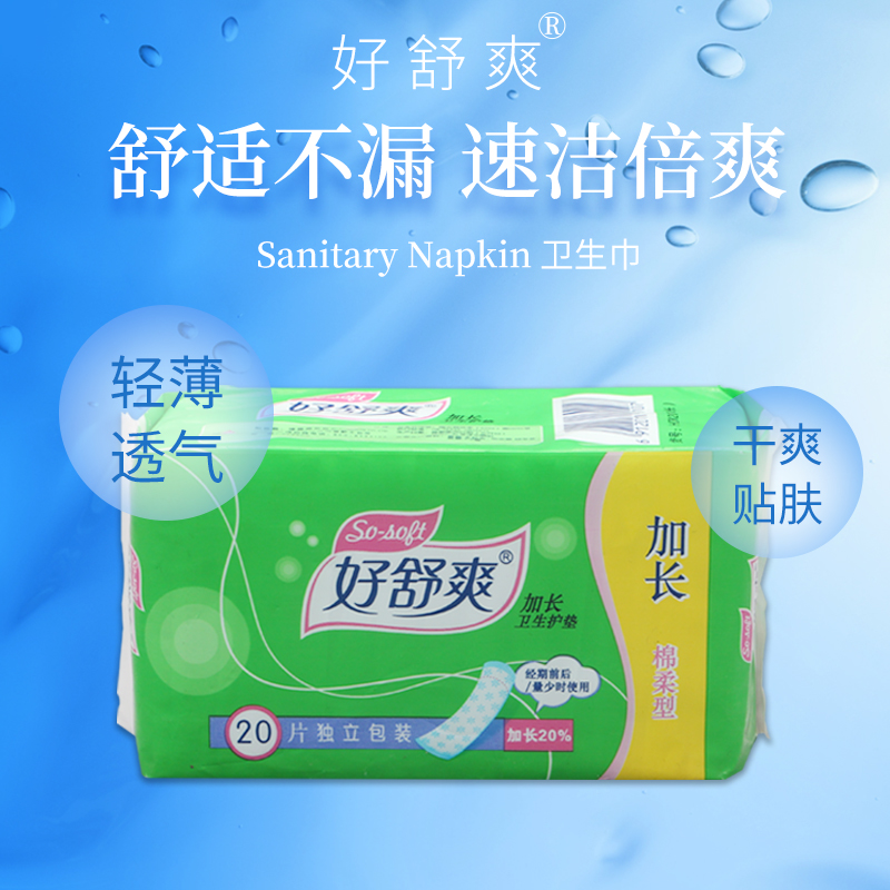 Good comfortable 20-piece lengthened sanitary pad night cotton soft fragrance-free 180mmHD820 mini towel