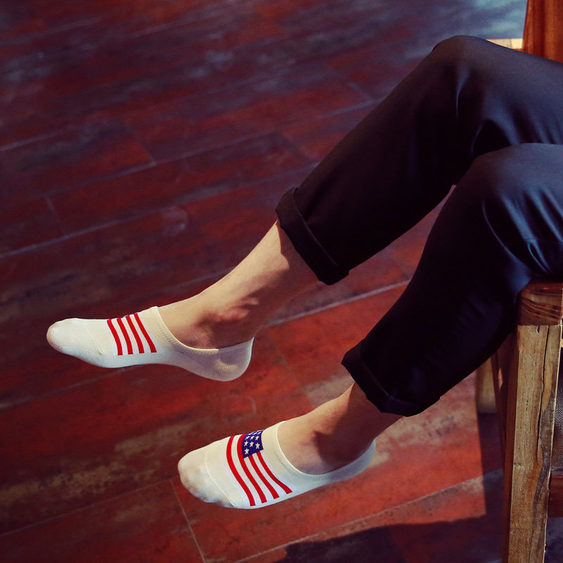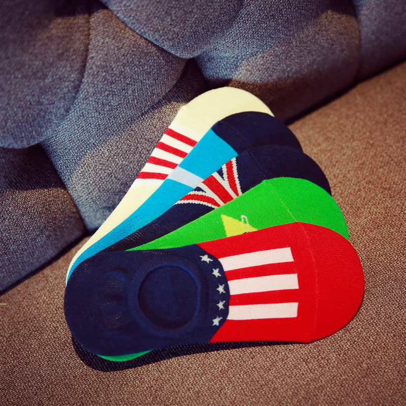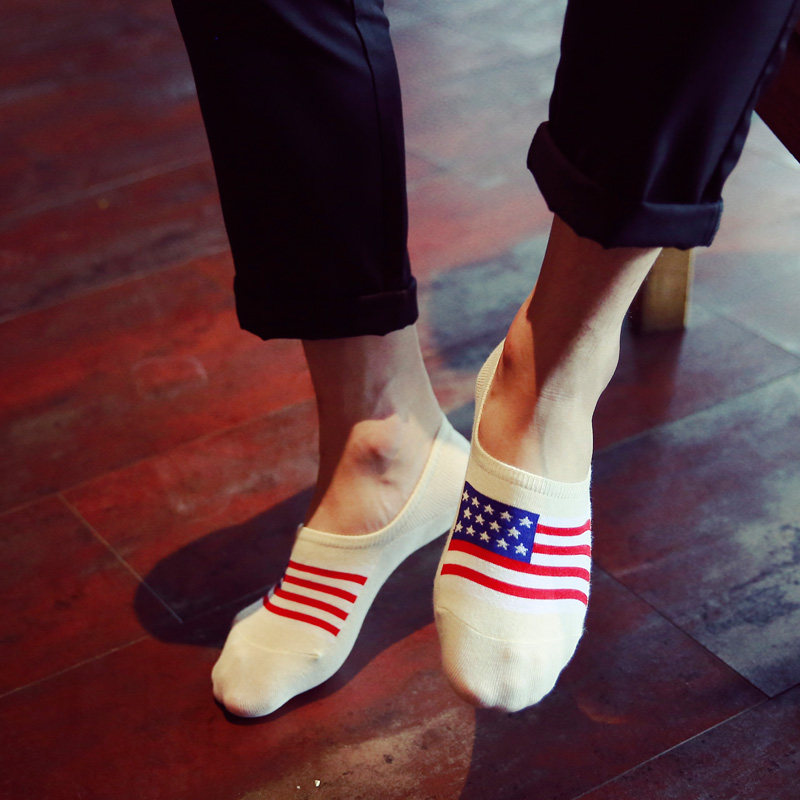 Flag invisible socks Puppy invisible socks Solid color invisible socks British style invisible socks Two bar invisible socks Rice word invisible socks Superman invisible socks Bamboo invisible socks Contrast stripes Invisible socks wide stripes