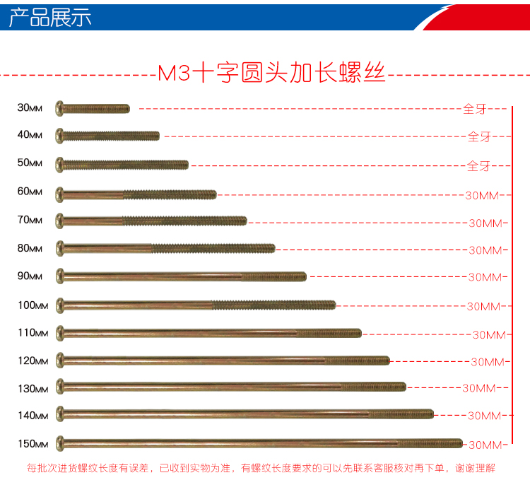 M3 lengthened screw 10 15cm 100110120130140150m m 100110120130140150m m 50 50 60 80 90