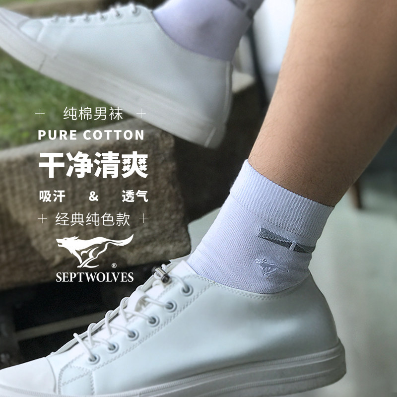 Seven Wolves Pure Cotton Socks Men Midtubes Full Cotton Socks Deodorant Autumn Winter Sweating Stockings Sport Pure White Male Socks