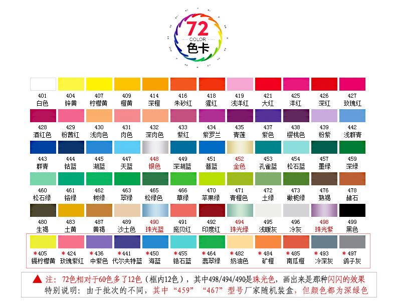 451 451 blue 421 red 448 silver 499 black 407 lemon yellow 452 401 401 white 404 zinc yellow 405 cadmium