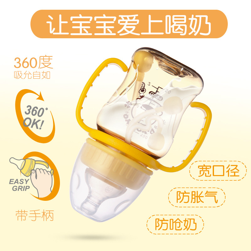 Yellow Duckling Baby Milk Bottle Ppsu Resistant To Fall Infant Wide Aperture Anti-Flatulled Silicone Pacifier With Handle Straw