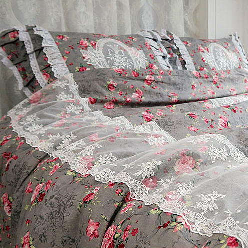 NANAROOM Korea imported pure cotton rose flower lace bow lace photo frame bedding four-piece set