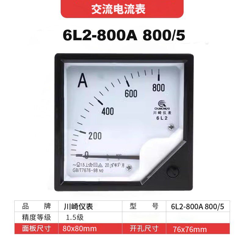 Kawasaki Instrument 6L2-A 10A 50A 100A 300A 500A 600A 800A 5A AC Ammeter