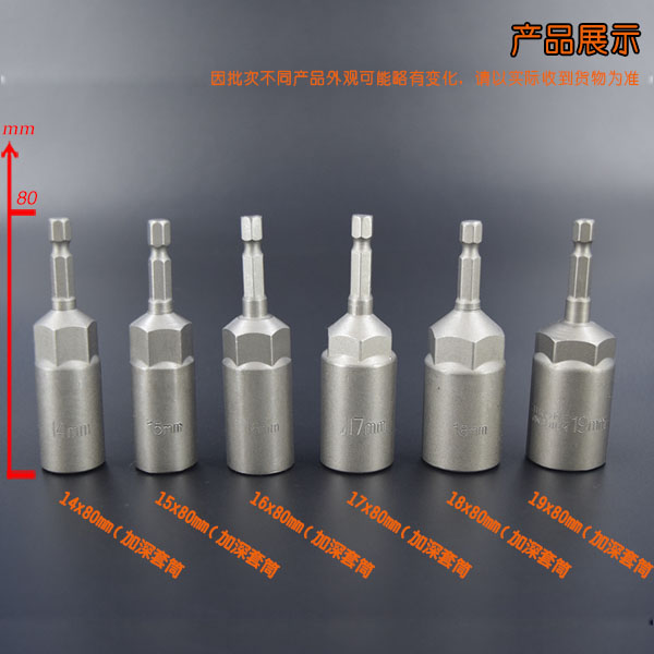 1 4 Hex handle electric drill sleeve Pneumatic screwdriver electric head screw Hand knife nut deepen the batch head tool lengthen 80mm