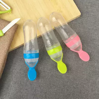 Baby food feeder rice bottle baby silicone spoon newborn can squeeze rice flour feeding spoon tableware