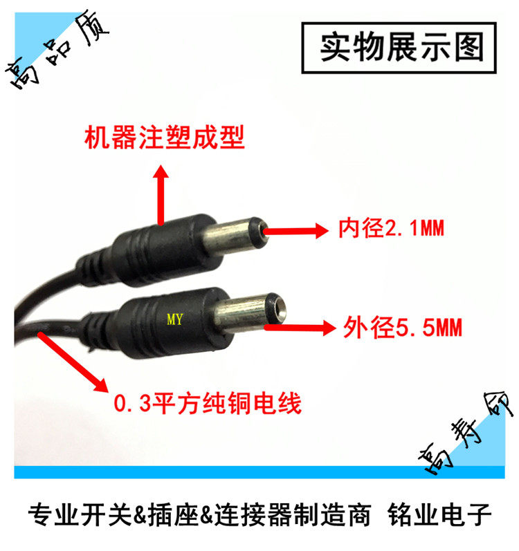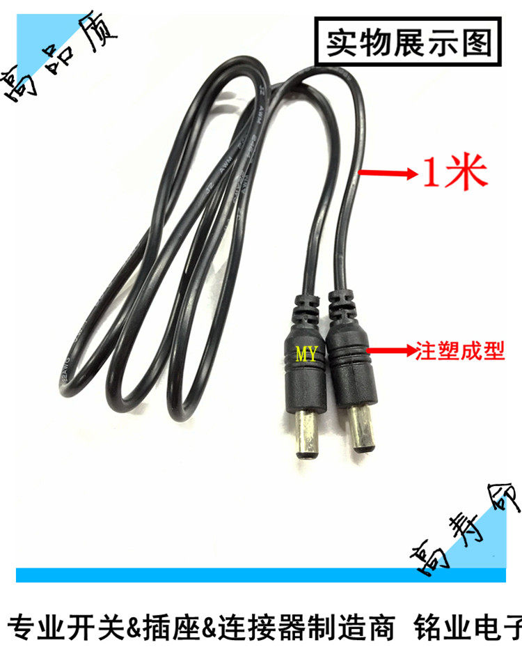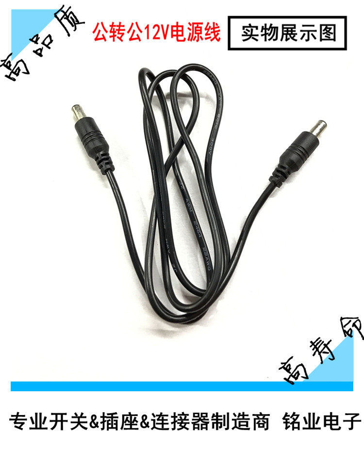 DC Power Extension Line Pure Copper 12V Power Plug Public Public Wire 5 5*2 1 Monitoring plug length 1 meter