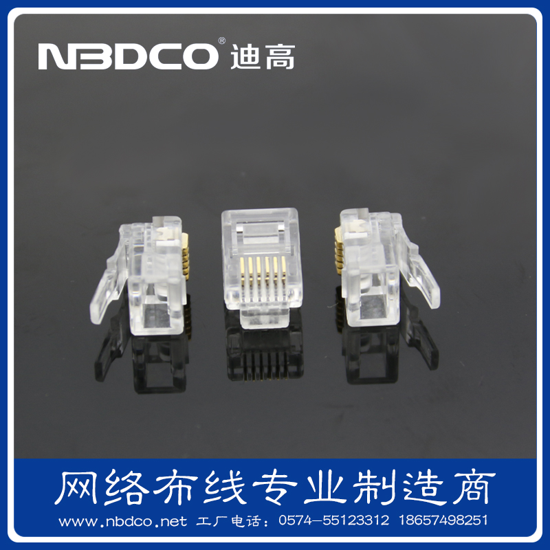 NBDCO 6P6C pure copper gold plated crystal head RJ11 six-core telephone line connector 200 pcs