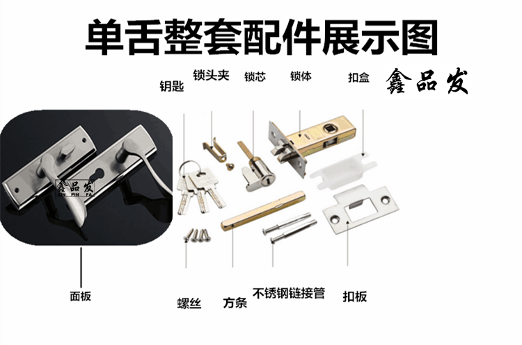 Manufacturer straight for aluminum alloy wire drawing single tongue lock 50 lock tongue single tongue bathroom wood door lock room door lock with key