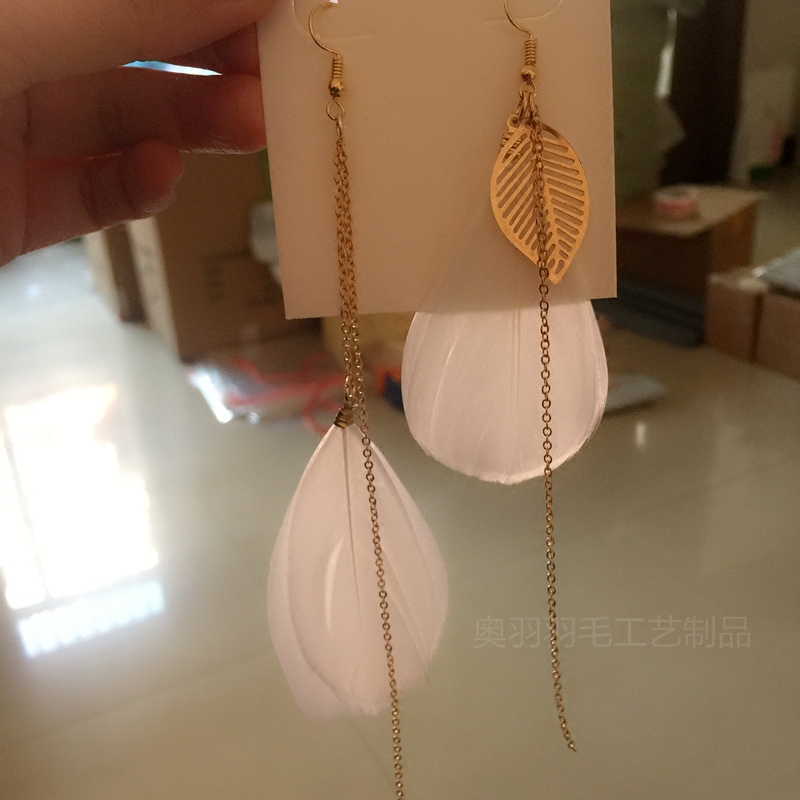 South Korea's new high-end feather super fairy temperament asymmetric long earrings feather earrings earring accessories