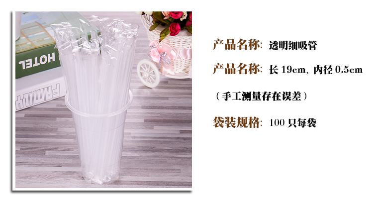 100 disposable straws milk tea beverage thick and long transparent straws pointed juice soy milk juice tube