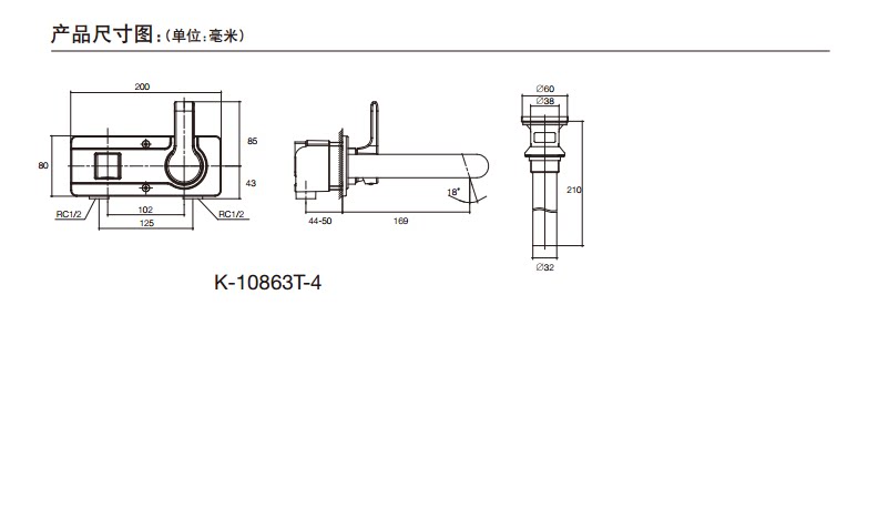 Kohler K-10863T-4-CP AF BN Xinjiali Wall Outlet basin Faucet
