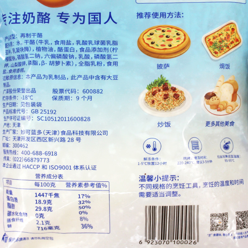 Inexplicable Blue Domasurira 450g Pizza Wire Drawing Cream Cheese Slice Cheese Home Raw Material